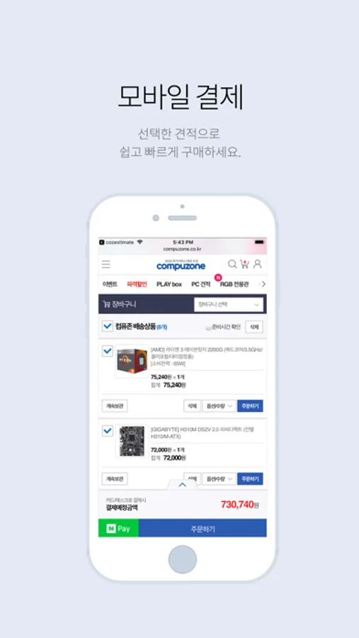 - 몇번의 클릭으로 간편하게 구성품 구매