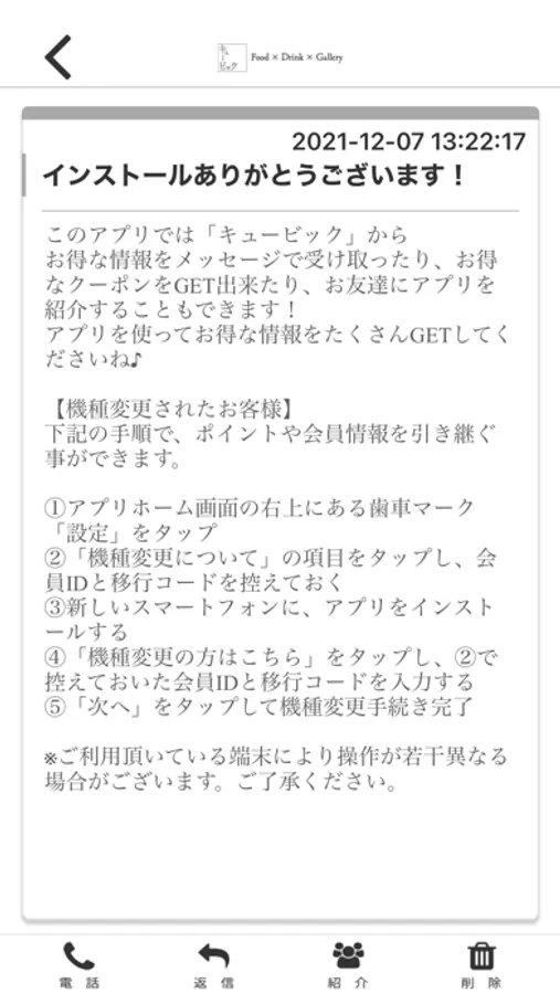キュービックのアプリをSNSを通じてお友達に紹介する事ができます。