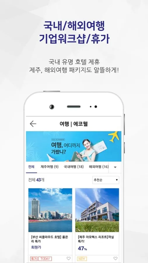 직원선호도 높은 숙박/여행/건강검진은 물론 기업필수 소모품 공동구매를 통한 절감효과!