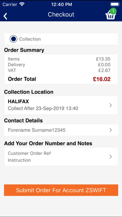 4. Place your order, then click and submit (partial orders can also be saved in the cloud to finish at a later date, on any compatible device)