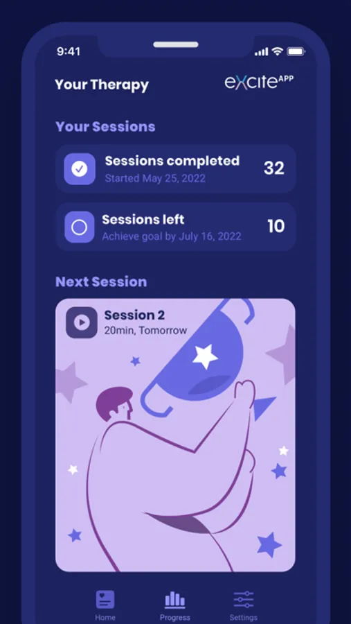 The eXciteOSA® app connects to the device via Bluetooth to activate and customize each therapy session. The app conveniently tracks your progress, keeps you focused on therapy goals, and shares valuable sleep tips with you along the way.