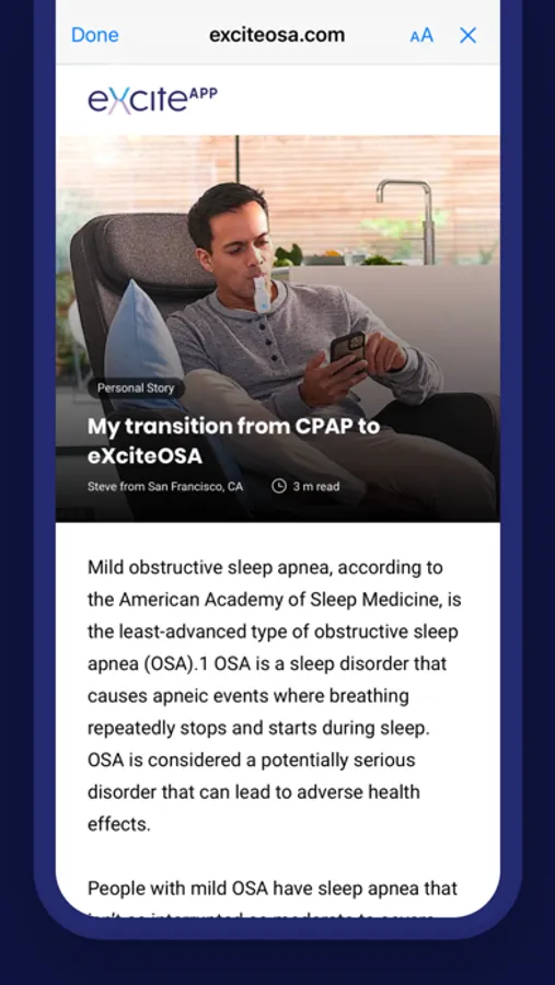 eXciteOSA® is the only daytime solution clinically proven to treat the root cause of mild obstructive sleep apnea (OSA) and snoring, rather than simply relieve the symptoms. The device only needs to be worn for twenty minutes a day, once a day, for six weeks, and twice a week thereafter.
