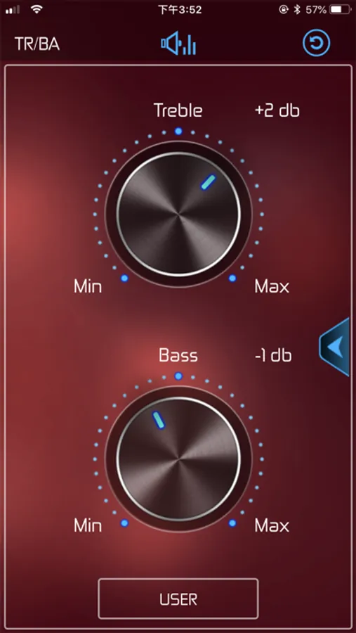 The app also features audio control such as treble/bass/volume level control of the connected radio.