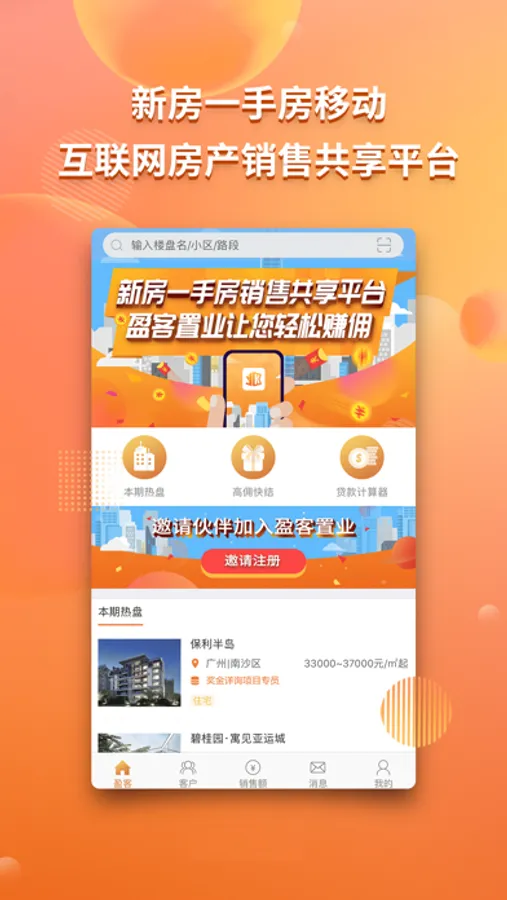 盈客置业APP:可供销售的优质新房盘源多多;收佣快,保障您的权益;时间弹性安排,轻松实现 SOHO 人生,圆您致富梦。