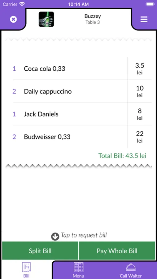 Buzzey is your restaurant sidekick. You can rely on it to view the menu immediately after you're seated, call the waiter to your table at any time, ask to pay the bill and even split it if you're out with friends.