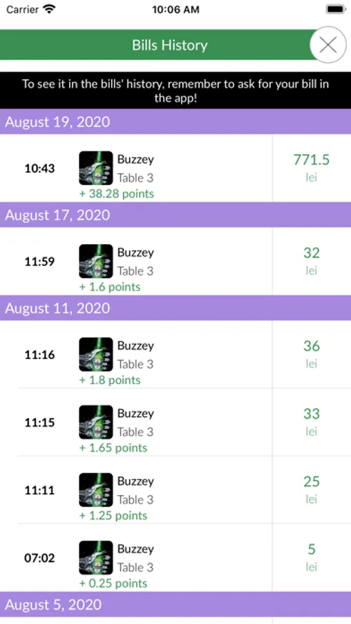 Using Buzzey in our partner restaurants also gives you the chance to earn rewards, such as discounts and loyalty points that you can redeem in the app on your next visit.