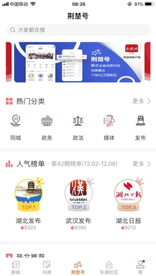 湖北日报传媒集团旗下产品,荆楚网(湖北日报网)出品,为用户提供专业的时政财经、湖北社会、国内国际深度报道,主打“荆楚问政”“东湖社区”“荆楚号”等优质栏目。