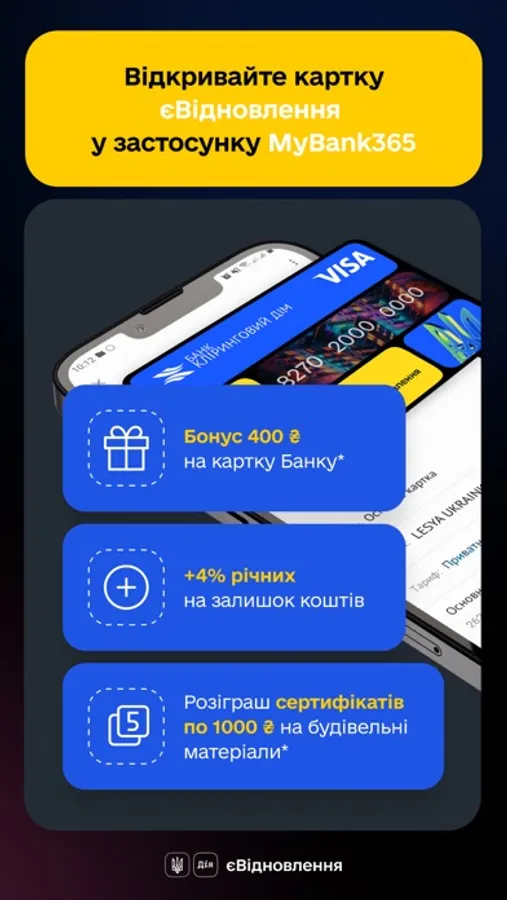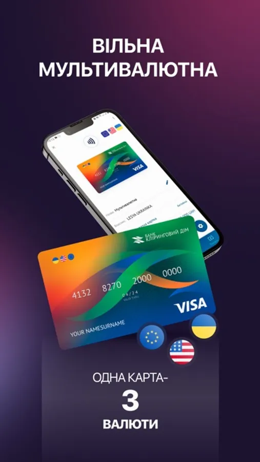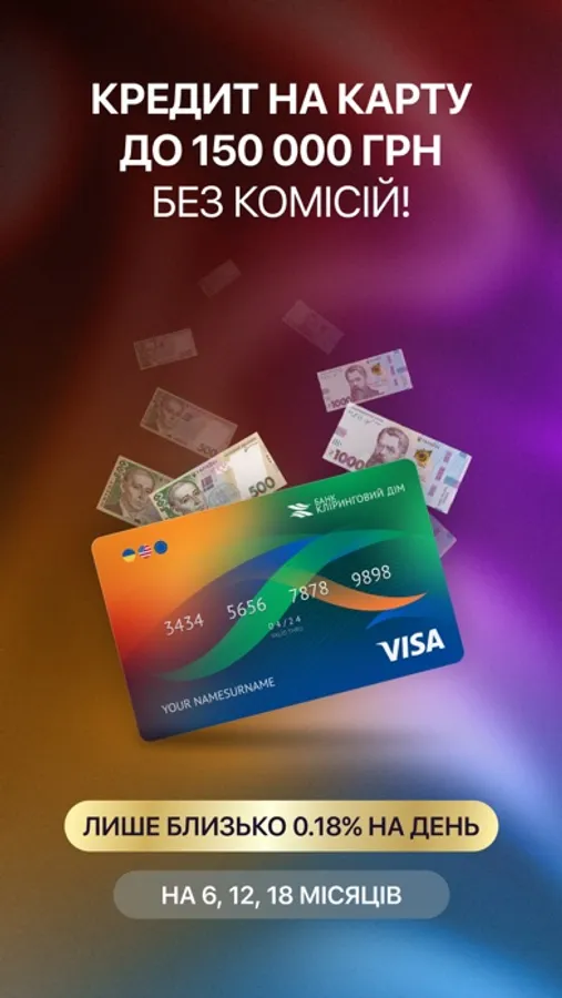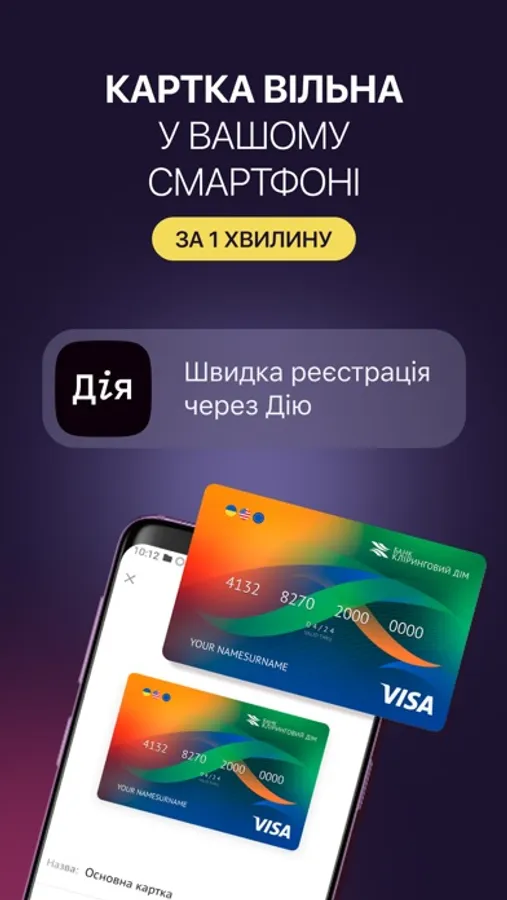 Registration in the application using Diia.Signature for new clients, or by card number for all clients of JSB "CLEARING HOUSE".