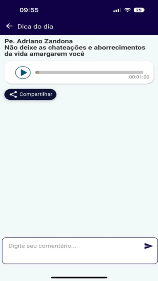 - Áudio de reflexão diária com padre Ezequiel Dal Pozzo