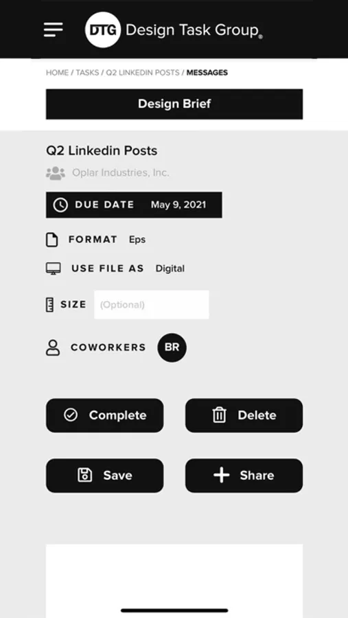 This application allows Design Task Group (DTG) members full access to their DTG designer or design team.