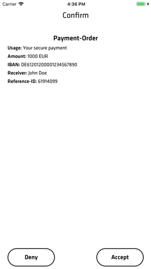 Enter your payment in the Berenberg Wealth Management Portal and check the data you have submitted. You will now be asked to authenticate the payment via the Berenberg Security App. To do so, open the app and select your corresponding Berenberg ID. The app will now show you the basic data of the payment to be authorized. With just one click you can confirm or reject the payment order.