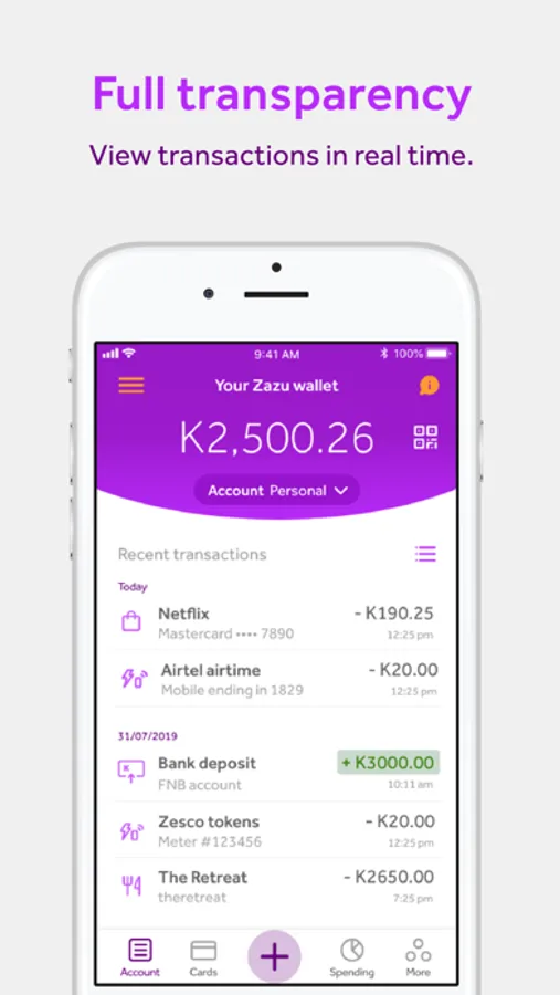 Zazu is an app and Mastercard® Debit Card that helps you track your money, spend better and save more. The Zazu debit card is available to anyone without the need for a traditional bank account and the Zazu app makes it super easy to manage and understand your finances. You can use the app to send money for free, to your friends, family and contacts on Zazu. You can also use the app to see how and where you spend. And don't forget to buy airtime, Zesco or DsTV with Zazu app.