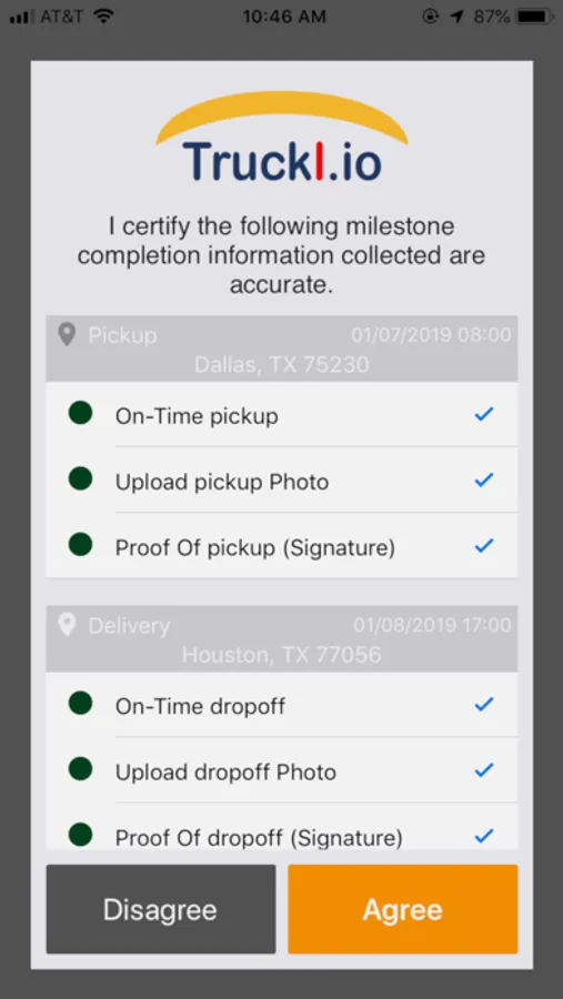• Easy data capture for arrival times, loading images, instruction compliance, or signatures.