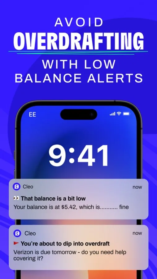 ***Cleo is not a bank. Direct deposit banking services provided by Thread Bank, Member FDIC. Early access to direct deposit funds not guaranteed, timing may vary.