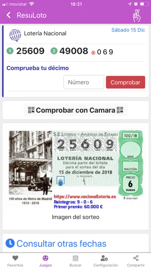 Consulta los resultados de todas las Loterías de España y Latinoamérica. La aplicación más sencilla de usar, con todos los juegos de todos los países. Además consulta tus boletos solo leyéndolos con la cámara de tu móvil