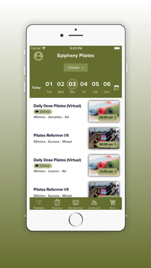 Epiphany Pilates App Screenshots