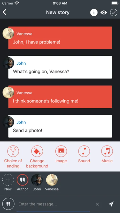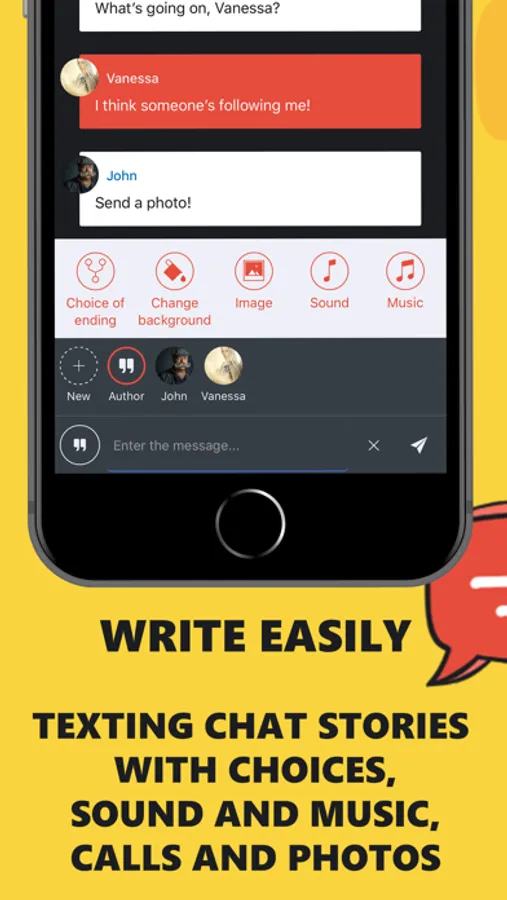 Maybe you want to realize your dreams of writing and find loyal fans of your talent? Mistory will help in this too. Thanks to our chat story maker, writing offline stories will bring you real pleasure. Diversify your texting stories with sounds and music, images, calls from participants in the chat story, or let the reader choice the end of the episode. Create a hooked story in which the reader himself will be the main character! Write your own love stories, horror stories, creepypastas, or fan fictions, and share them with your friends and our community. The best stories will end up in the Catalog, where they will be seen by thousands of readers. Isn't this the dream of any author? Publish exciting stories and get vivid confirmation of your talent in the form of views, likes, reviews and new subscribers. The app encourages talented authors whose interactive stories were able to get into the Catalog. We directly transfer in-game coins to authors when readers spend stories in their episodes.
