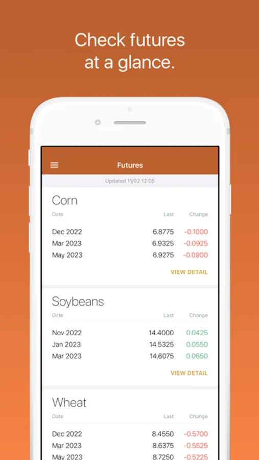 Futures: See Grains, Feed, Livestock, and Ethanol futures listed in order of your preference