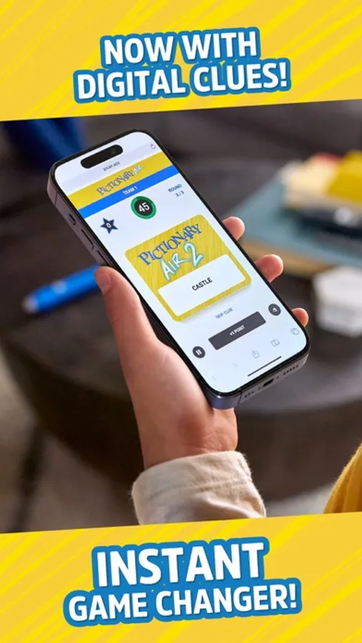 Pick up the Pictionary Air™ 2 upgraded pen (sold separately), connect it to the app, unlock clues and get your air-drawing game on! Clear the screen and add points directly from the pen. You can also save and share videos of all your funny gameplay moments! Several themed digital clue packs are also offered as an in-app purchase, so you can keep on playing!