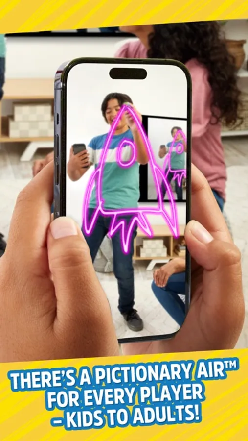 Pictionary Air™ Kids vs. Grown-Ups has kids playing against adults in an air-drawing showdown! Kids clues include images, so players 6+ can join in the fun.