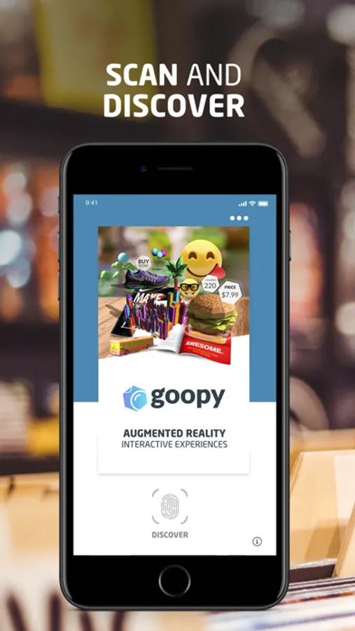 Goopy is an augmented reality mobile app that allows users to access interactive content from objects and images like products, newspapers, magazines, books, posters, postcards, artworks, etc.