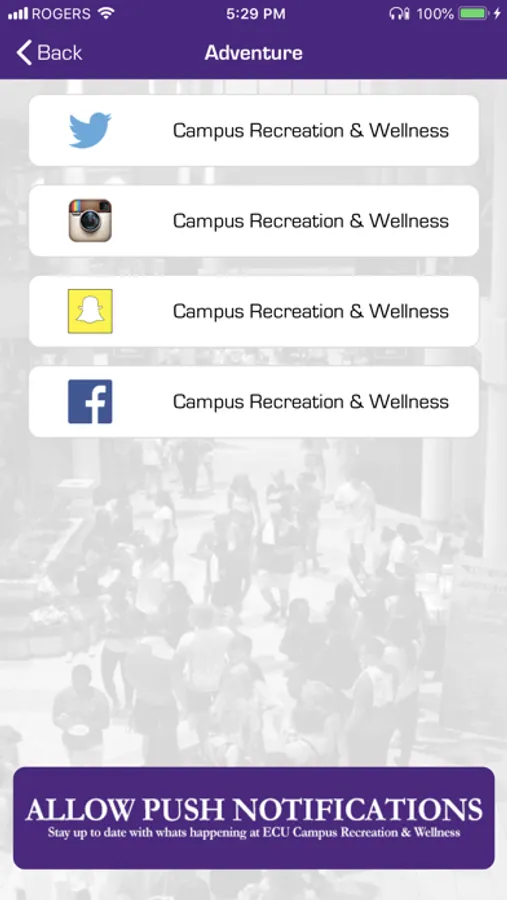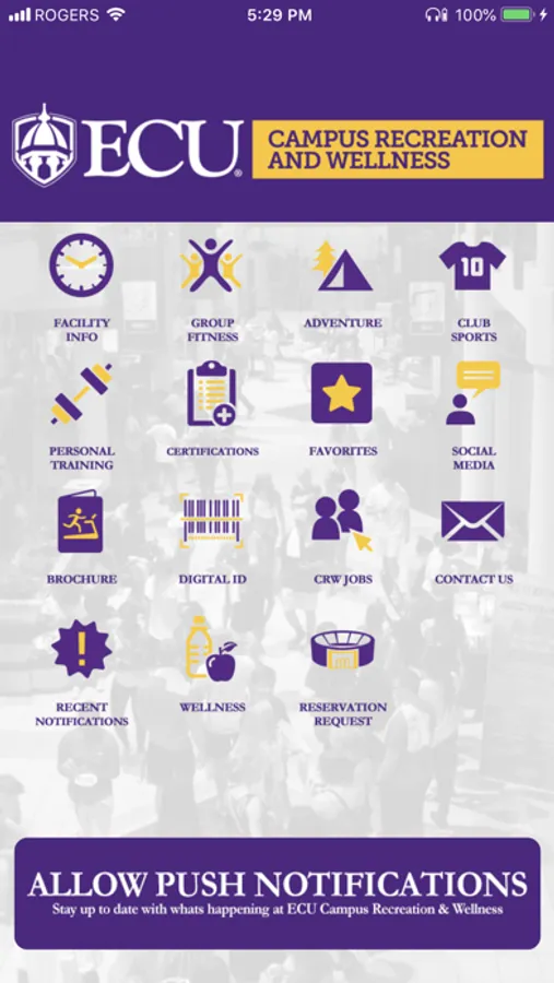 Welcome to the official app for ECU Campus Recreation and Wellness. This app will allow you to stay connected and keep you up-to-date on the latest programs and services offered at all CRW facilities. Information on group exercise classes, intramurals and club sports, adventure, aquatics, youth, and wellness programs are available at your fingertips. You can receive notifications of class cancellations, facility closures, and upcoming special events. Play Hard. Live Well by choosing your favorites and get reminders sent to your phone.