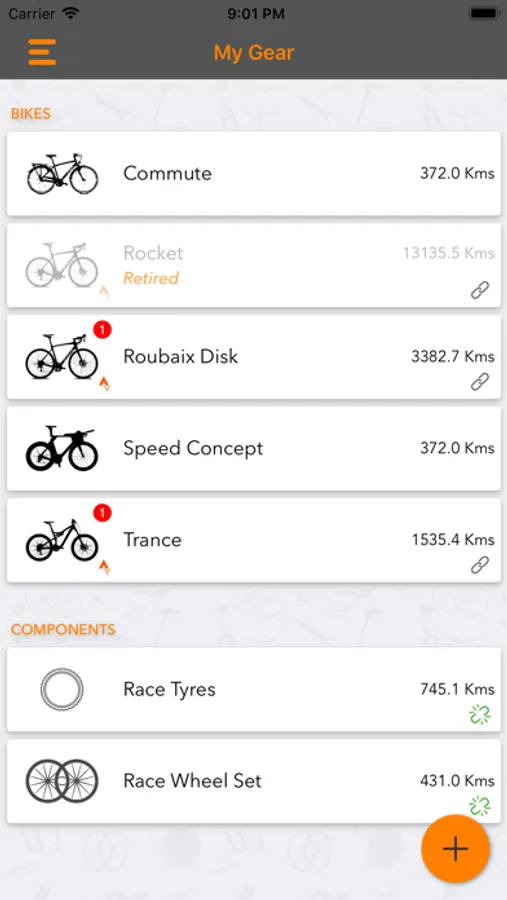 Wondering when was the last time you changed your front tyre? Or what distance you've ridden with your race wheels? Or when you need to service your suspension? MainTrack will help you to answer these questions and much more.