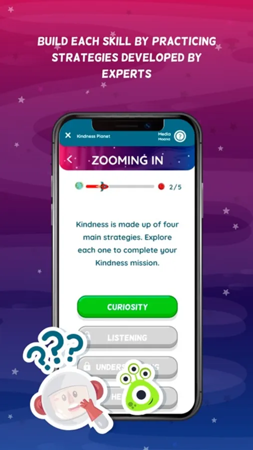 For this first version of the app, we have built lessons on Kindness. Soon, we’ll add lessons for many more skills.
