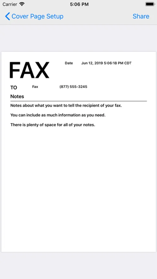 Choose which fields you what to show on your fax cover sheet. Fax pages can include a note section for your typed in message to your recipient.
