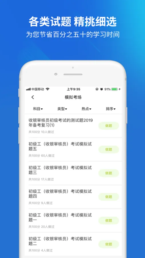 收银审核员题库有模拟考场、历年真题练习、每日一练、快速练习、考点练习、考试押题、做题记录等多种学习与做题模式、丰富多样化的陪你一起考收银审核员。
