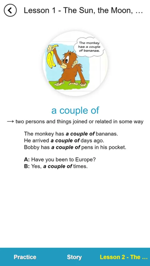 Within each lessons, target idioms are first defined for students. The definitions may explain the idiom in simple terms or use synonyms or other idioms to build a student's understanding of the meaning underlying each idiom. Each definition is then followed by sample sentences and short dialogs using the idiom in context. Finally, idioms are illustrated with humorous illustrations which can help build a memorable picture of each idiom's usage in the reader's mind.
