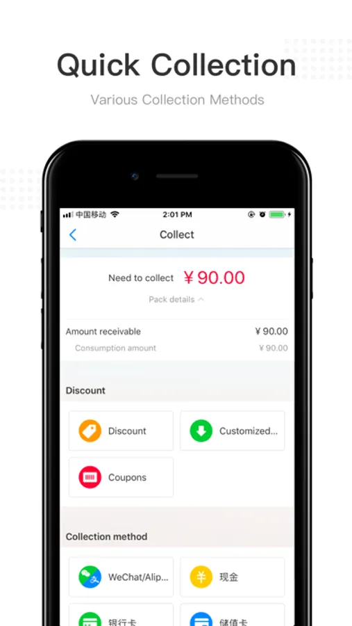 Alipay, WeChat pay, Top-up, Cash, Credit card etc..