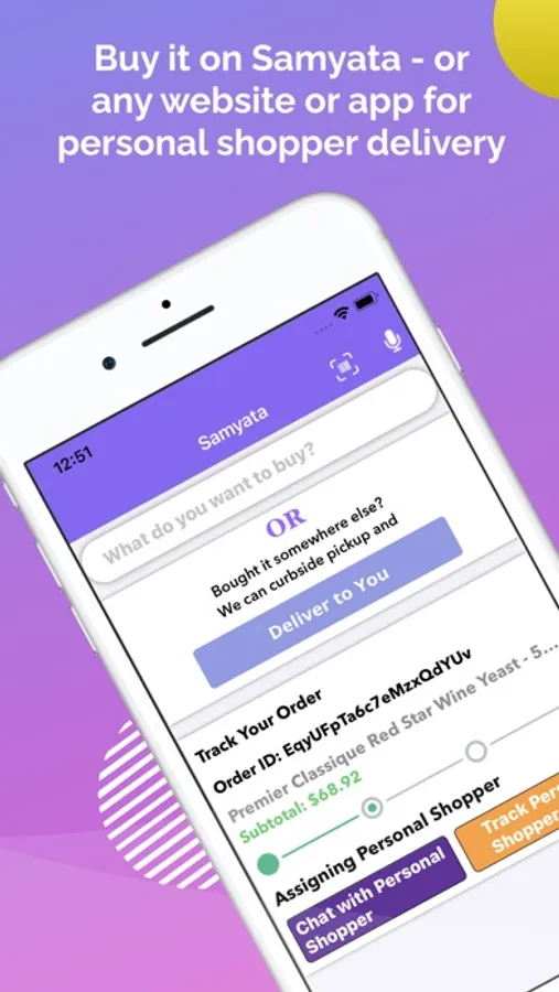 Samyata makes shopping easy, fun and convenient. I get what I want, locally through pickup or personal shopper delivery. I find what I want, in stock, at stores near me; or if I can't find it, my personal shopper can shop for it. I can pick up my purchases myself OR have a personal shopper pick them up for me. Even if I bought what I want on any other website/app for pickup, I can have a personal shopper deliver it. My personal shopper works with me to get what I want even if I'm not sure at first. I choose what I pay my personal shopper I can conveniently split the cost of a purchase with others, easily paying with deyaPay. And there are lots of convenient features - including shopping lists, wish/gift lists, etc.