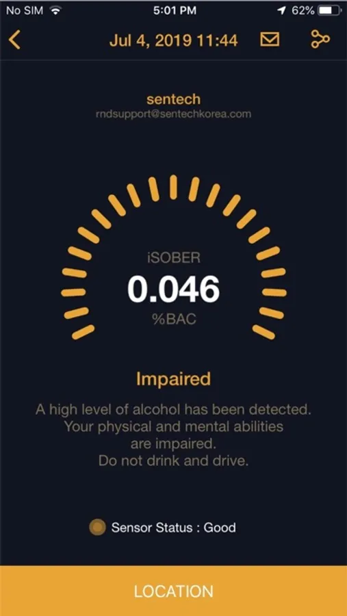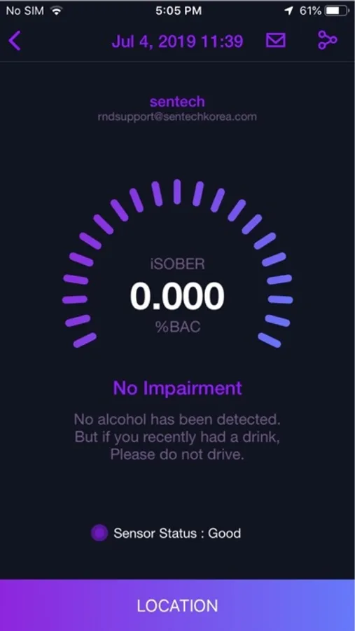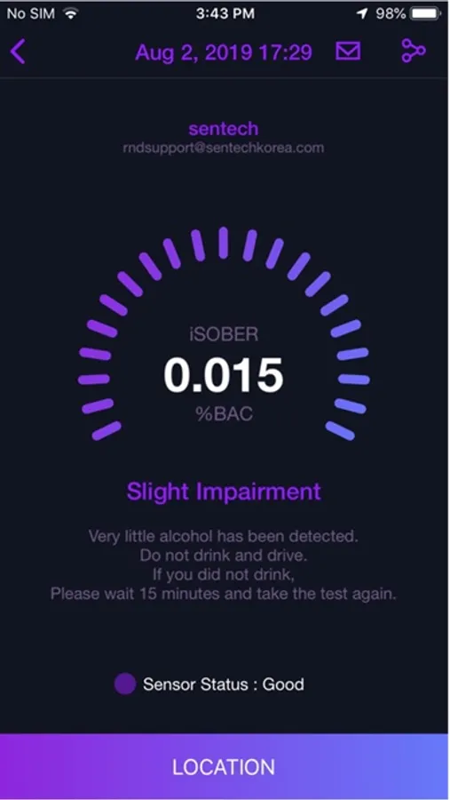 Sensor quality will be checked and will give a message on an iSOBER App.
