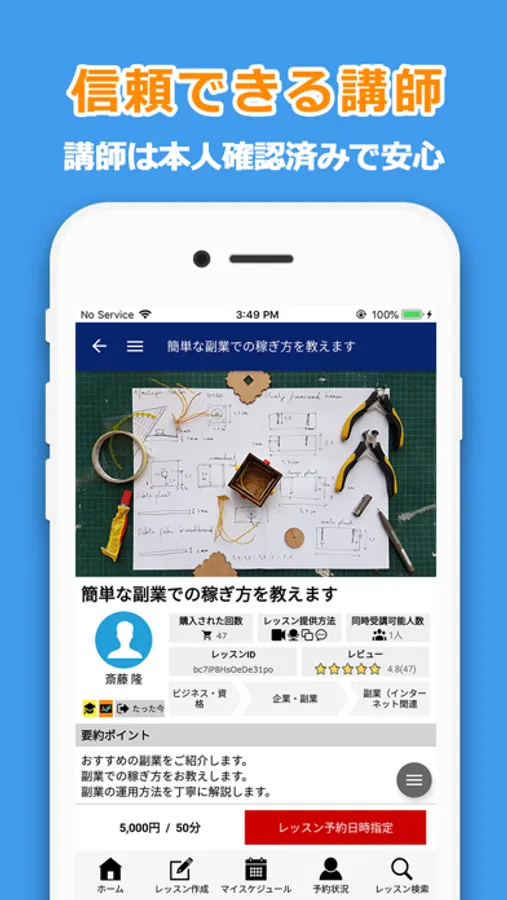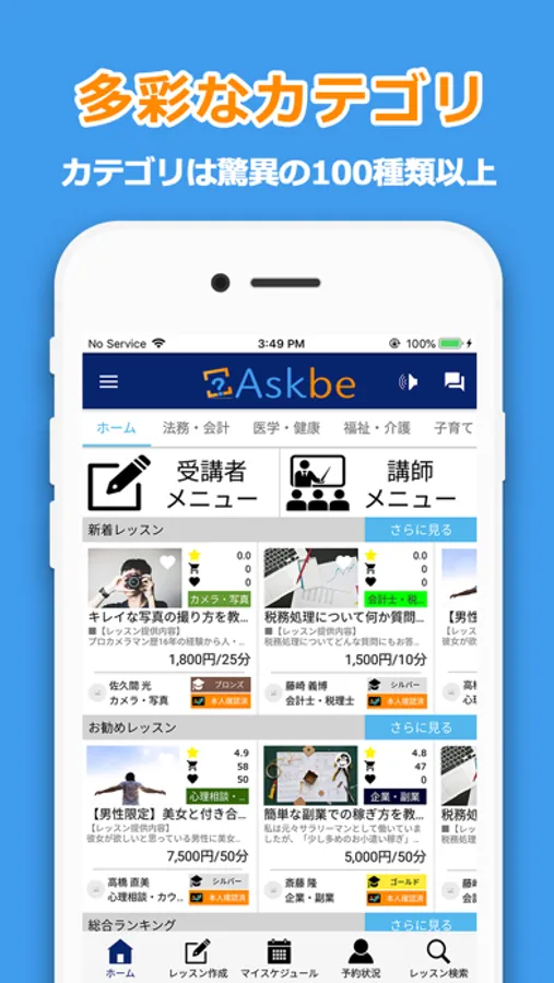 また、レッスン料金のやり取りはアスクビーを通して行い、講師に支払われるのはレッスン終了から24時間後のため、受講者の方から通報があった場合は、運営事務局がレッスン履歴から公正な審査を行い講師側に問題行動等があれば返金されますので、安心してレッスンを購入することが出来ます。