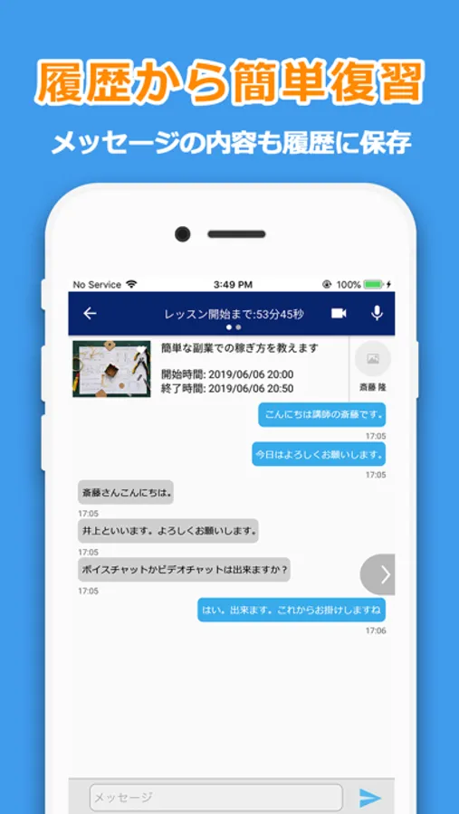アスクビーでは受講したレッスン内で行ったメッセージチャットやノートの履歴が保存されるので、レッスン後に改めて復習することが出来ます。