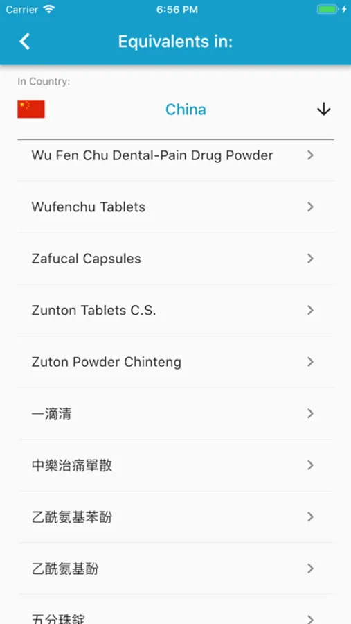 So you are on a business trip to China and suddenly need one of your usual medications. How are you going to find it there? With Convert Drugs, in a few seconds and without an Internet connection, you'll see a list of equivalent drug names and you can even show the local name full screen to the local pharmacist or doctor.