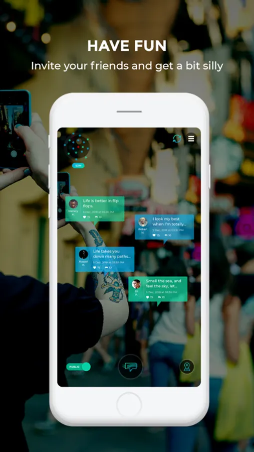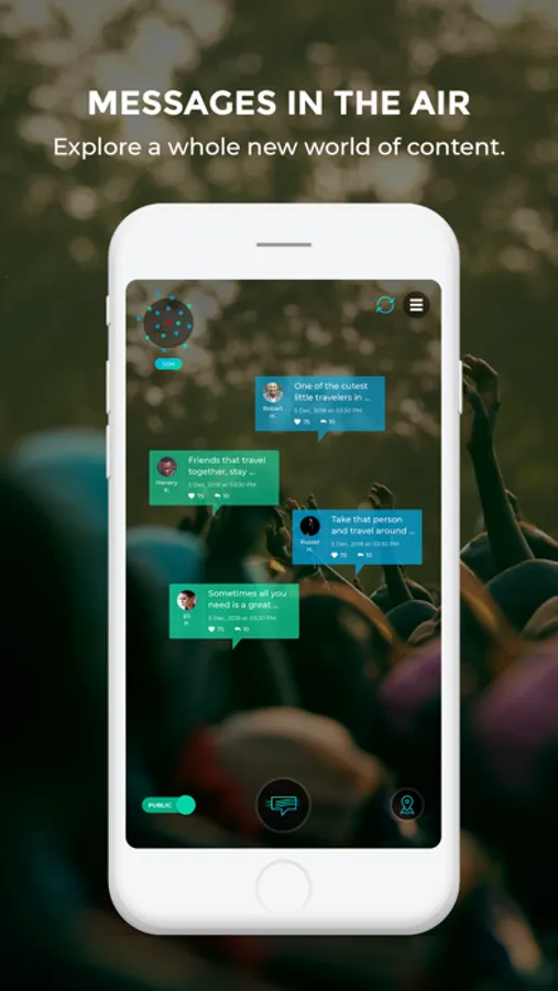 AirSyne is the first app that lets you create a message (we call them Synes) and float it in the air.