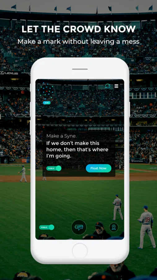 Leave comments in the air at concerts, events and the big game. Get into some heated arguments with the opposition but keep it clean. Float a Syne to let others know where you are. AirSyne is the only messaging app that lets you create content in the air. You can even comment on other Synes, so start a conversation in the air.