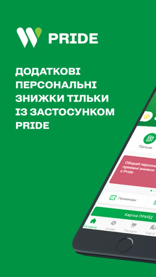 • Персональні умови по картці ПРАЙД. Завжди в курсі актуальної винагороди за заправку.
