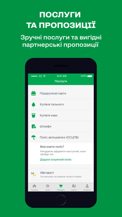 • Карта АЗК з детальною інформацією та доступними сервісами.