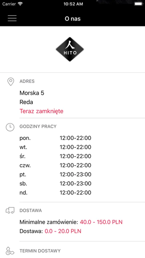 Oprócz zamawiania online aplikacja pozwala sprawdzić: