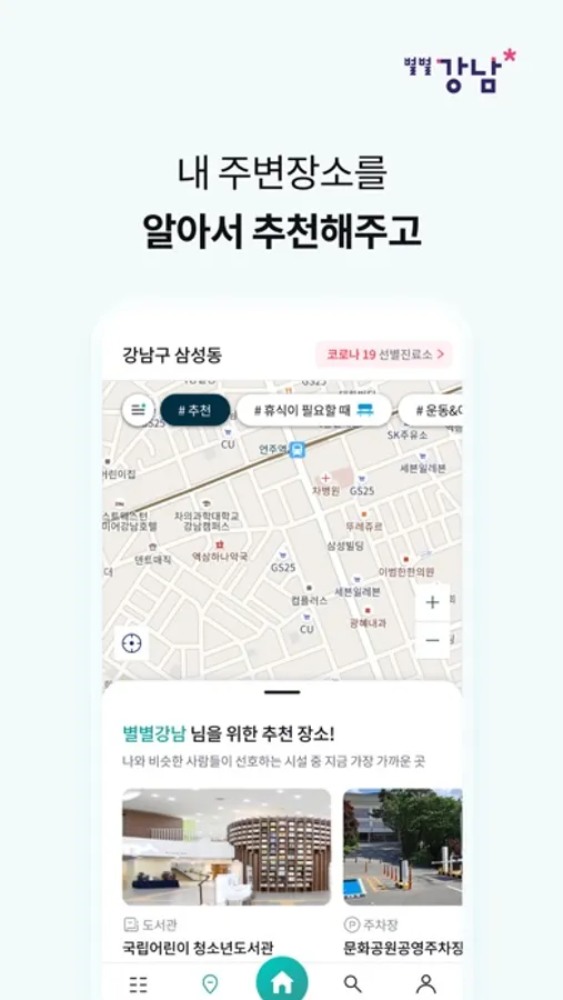First of all, The function of Shared Economy helps users to share easily nearby location, users' products, and other medical auxiliary apparatus. In addition, users can get up-to-date information of 5 items—Ultra Fine Dust, Fine Dust, Temperature, Humidity, and Noise—by environment sensors in Gangnam, and information of ongoing festival or other events in Gangnam on the menu "Gangnam Hot Issue".