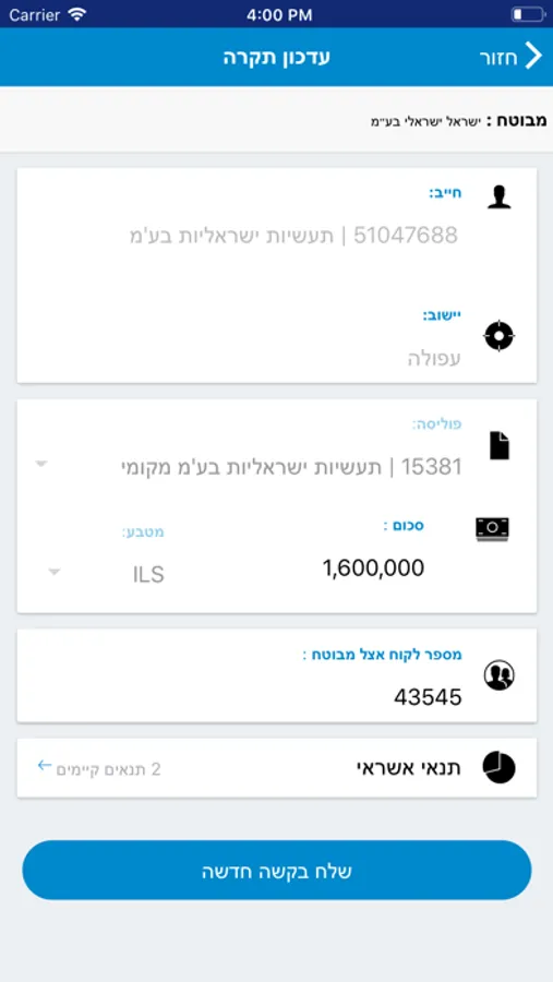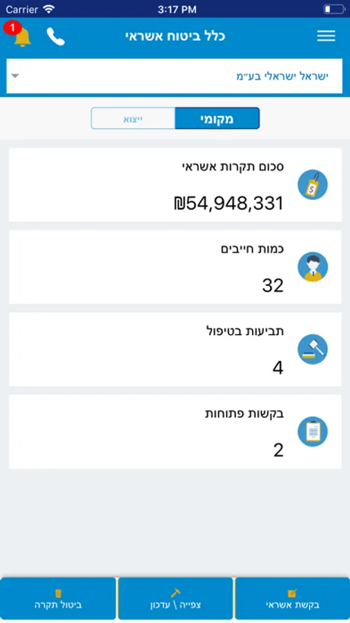 אפליקציה לניהול פוליסת ביטוח האשראי מאפשרת לך לצפות בתקרות האשראי המאושרות, להזין בקשות חדשות ו/או עדכוני תקרות ולבטל תקרות עבור כל הפוליסות שלך בחברתנו בכל מקום ובכל זמן, בפשטות ובקלות.