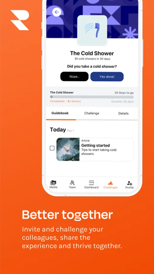 Connect Recharge360 to your favorite healthtrackers like Apple Health, Fitbit, Google Fit, Polar, Garmin and more. So you can track your movement in our app. Activate your collegues and start a competition!
