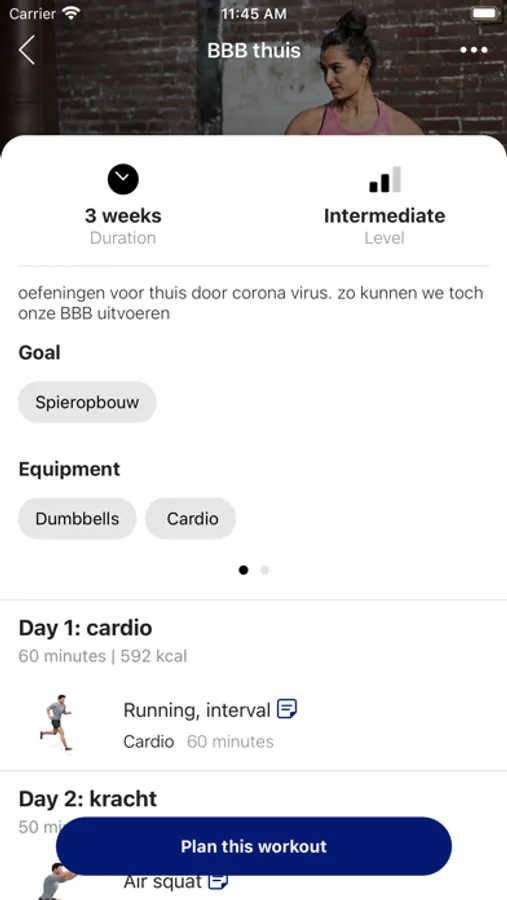 Kies de workout die bij jou past en start met jouw ideale training: in de sportschool of thuis. Houd je fitnessprestaties bij van conditie tot kracht, van afvallen tot groepsles: deze App is jouw eigen Personal Trainer en geeft je de motivatie die je nodig hebt!