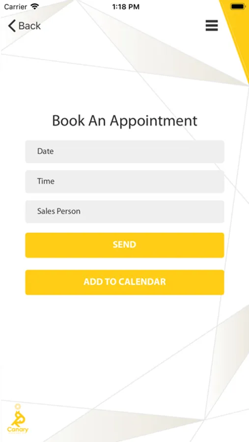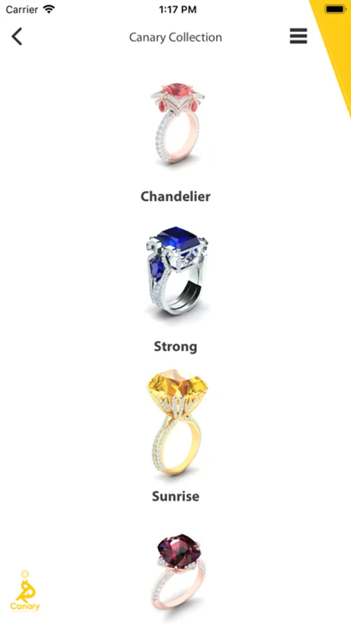 The Canary Diamond Ring Try-On App aims to give users a wholly unique and immersive virtual reality experience that allows them to feel they are already wearing a piece of jewelry from the comfort of their own home or on the go right from their mobile phone. This iOS app functions as a catalog to select a ring, schedule viewing appointments and features a unique AR/3D (Augmented Reality/3D) try-on function. When a user points their smartphone camera at their hand, the selected ring will appear on the user's finger and appear rendered completely with glimmering gemstones and reflective metal.