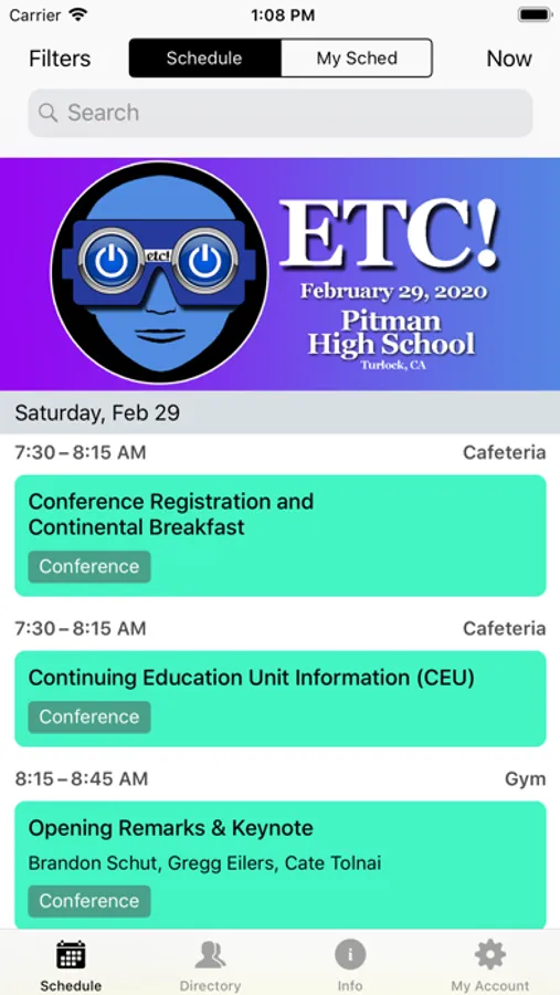 Browse the entire schedule for ETC! 2020 Conference. You can filter by color-coded types, venues or search for what you need. Get the full details of every event without having to crack open an event guide.