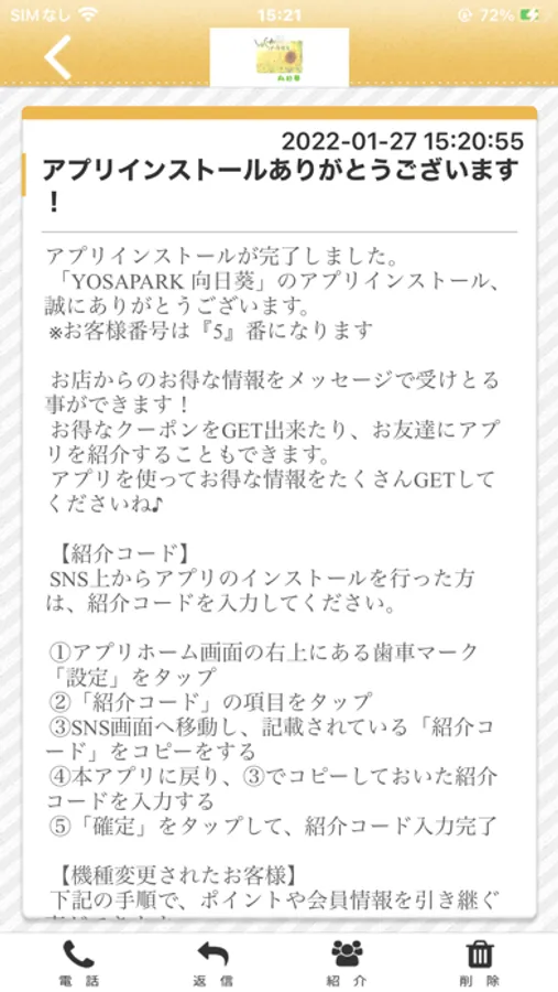 向日葵のアプリをSNSを通じてお友達に紹介する事ができます。