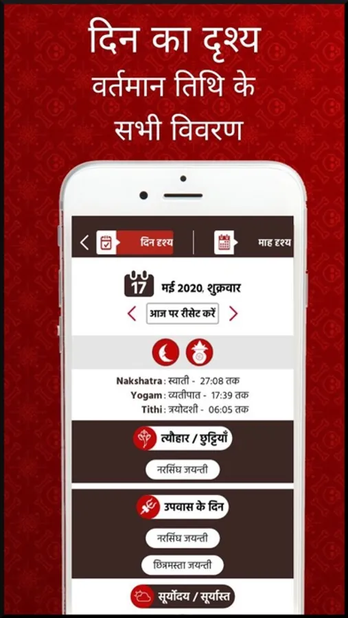 -Tabs: Calendar, Holidays, Shub Muhurt